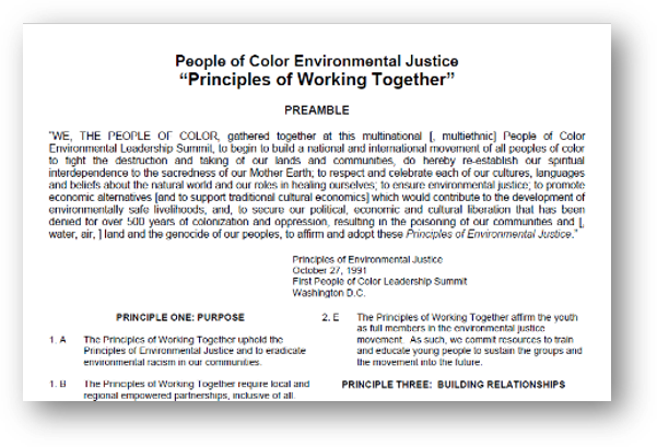 “Principles of Working Together” – People of Color Environmental Justice 1991 EJNet.org